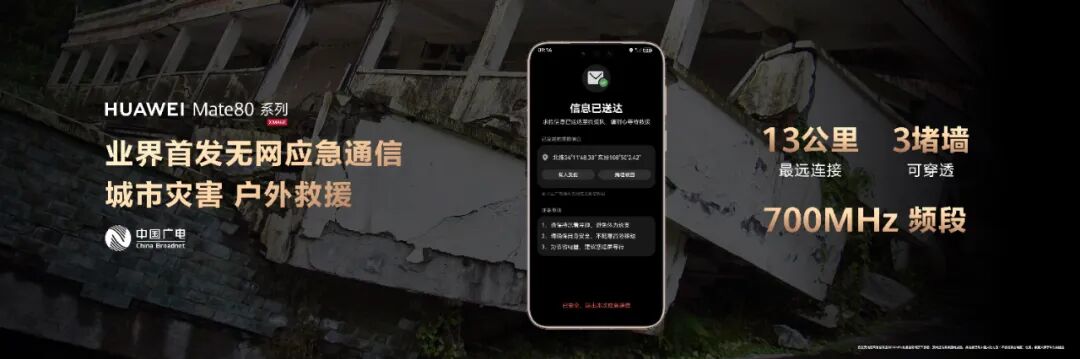 人类永远都有可能面对各种灾难,灾难到来之时,通信是救援最重要的支撑,普通人很难随时携带应急通信工具,但是一定会携带手机,在手机里加入应急通信能力,在通信网络中断的情况下,也能进行通信,这以前是普通人想也不敢想的事。而华为Mate 80系列首次把这样的应急通信能力做到手机中。